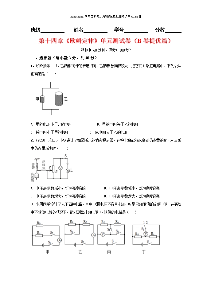 - 1552021-2022学年教科版八年级物理下册单元基础与提升卷:第12章 机械能 提升卷(原卷和解析版)
