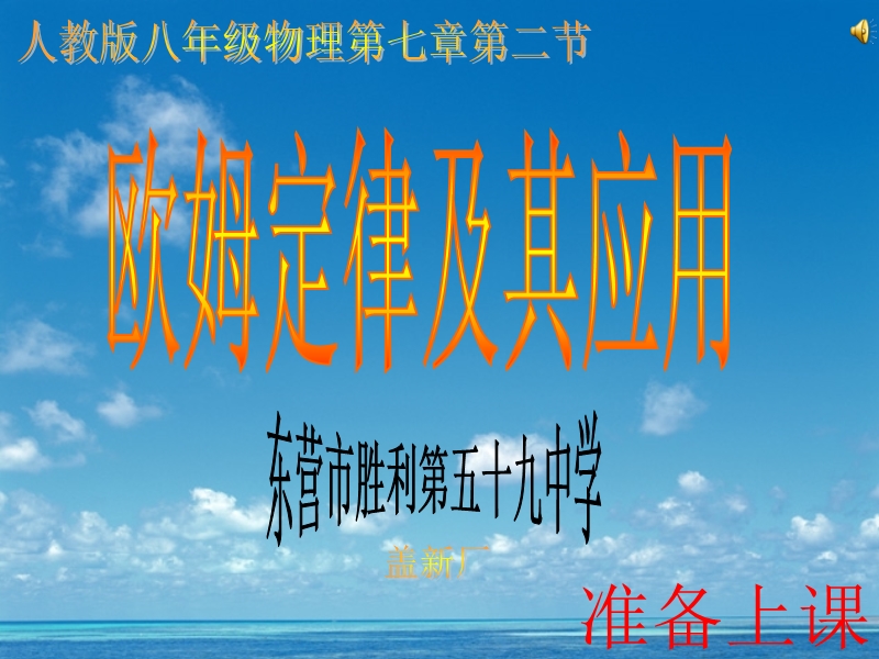 东营市胜利第五十九中学公开课课件:人教《7.2欧姆定律及其应用》ppt课件(免费)(旧)