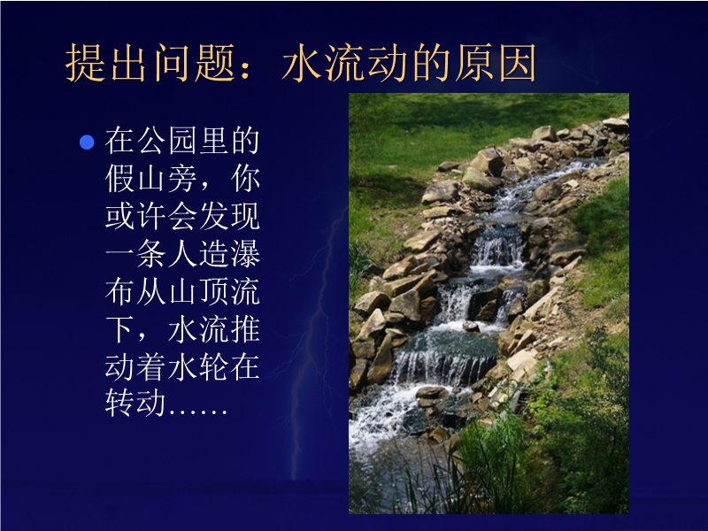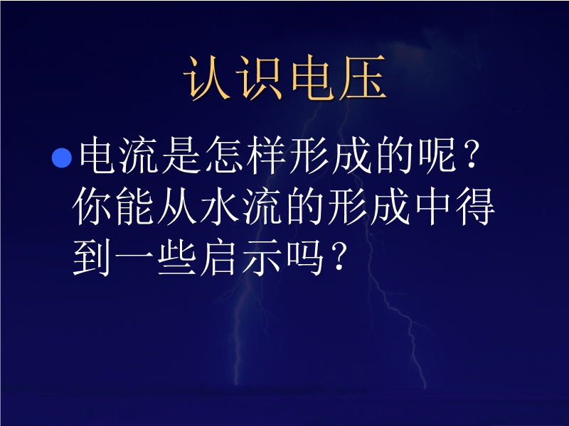 本课件以教科版新教材九年级第五章第二节为基础制作,共有23张幻灯片,并插入了一个flash动画。课件将电路和水路相对比用图片展示,引导学生认识了电压的作用,知道了电压的符号和单位。课件介绍了学生用电压表的使用方法,最后将电压表和电流表作了祥细的对比。