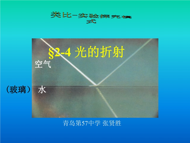 - 758第十三届全国中学物理青年教师大赛初中组一等奖课例11:4.4《光的折射》(海南 杜攀)