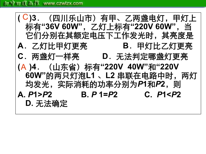2012年中考复习试题汇编系列课件:《电功和电功率》ppt课件(免费)