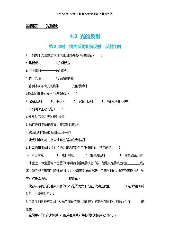 - 7392020秋教科版八年级物理上学期课时同步练:4.1光源 光的传播(附答案与解析)
