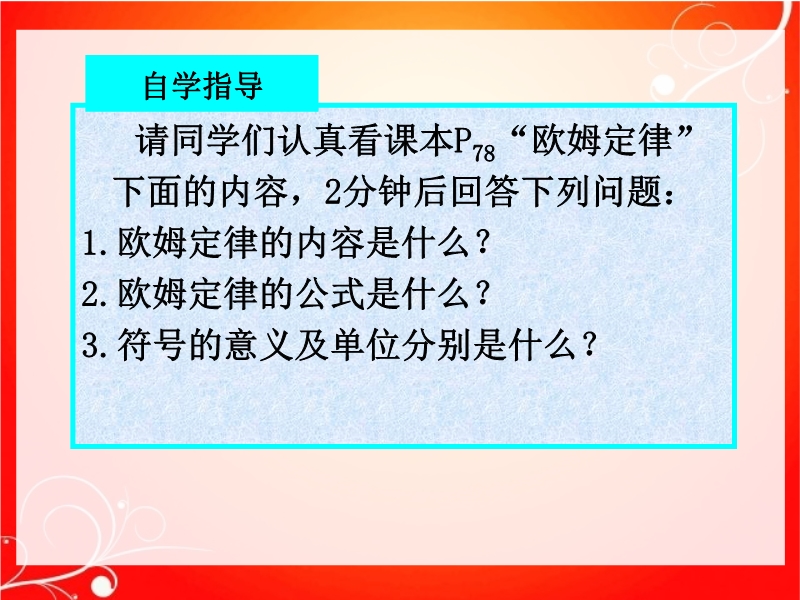- 下一份课件:人教版:《17.2欧姆定律》ppt课件(4)