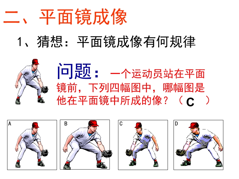【内容简介】人教版:《4.3平面镜成像》ppt+视频+flash课件,共有30张幻灯片,并插入了1个flash动画和1个视频。课件引导学生认识了平面镜的特点,探究了平面镜成像的特点,并用flash动画和视频演示了实验过程。让学生进一步熟悉实验设计的原理。