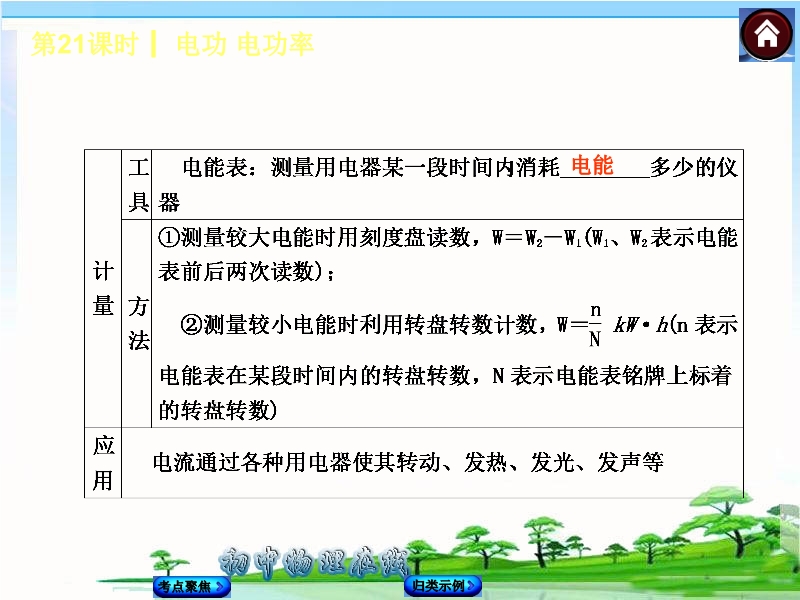 【内容简介】2015中考沪科版复习方案:《第14课时 机械效率 机械能》PPT课件,课件共33张ppt幻灯片,课件从如下几个方面组织学生复习:1.考点聚焦,引导学生复习了:机械效率、机械效率的测量、动能和势能、机械能及其转化。点拨了物体动能和重力势能间的转化规律,功、功率和机械效率,课件主要通过填空的形式再现本章主要知识点,引导学生进一步熟悉教材,落实双基。2、归类实例,根据知识点,列举了大量中考试题,提高学生的解题能力,每道试题都进行了解析和点评,培养学生运用知识解决问题的能力。同时对解题的方法进行归类总结,课件最后学习的方法进行总结,提升,复习了:判断滑轮组机械效率变化的方法、如何卫星的动能和势能的转化