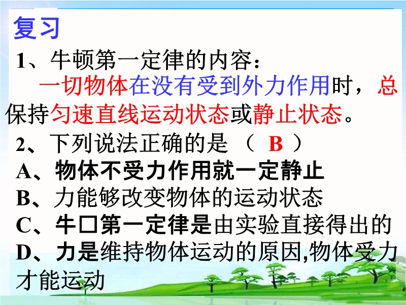 人教版:《8.1牛顿第一定律-惯性》ppt+视频课件