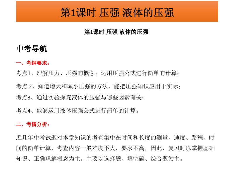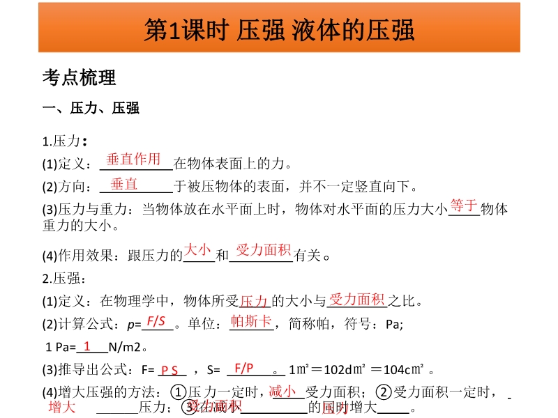 广东省2015中考物理冲刺复习课件:《第9章+压强》PPT课件(免费)