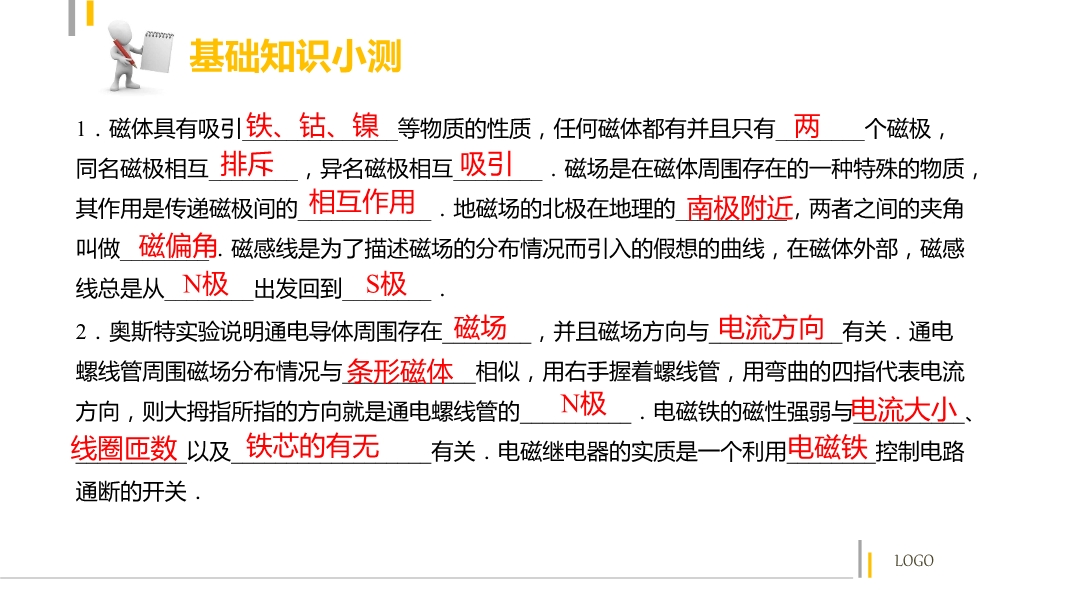 【内容简介】【中考突破】人教版2016年初中物理中考复习课件:《第20章 电与磁》ppt课件,课件共有33张幻灯片,引导学生认识本章的知识点:1.磁现象; 2.奥斯特实验、电生磁; 3.磁场对电流的作用; 4.法拉第实验、磁生电,通过填空引导学生回顾本章基础知识,课件的重点是按照考点重点突破,引用了2015年中考试题,通过试题的评析,总结解题思路,同时通过全方位突破,提高学生解题能力。