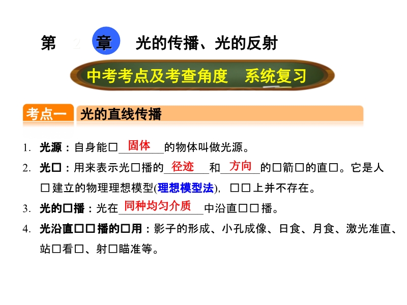 【点拨中考】2017年中考物理(全国版)总复习课件:第二章 光的传播、光的反射(共20张PPT)