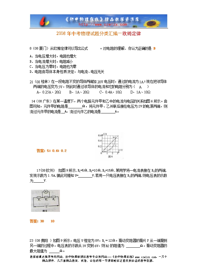 - 下一份试卷:2008年中考物理试题分类汇编—电功率电路分析