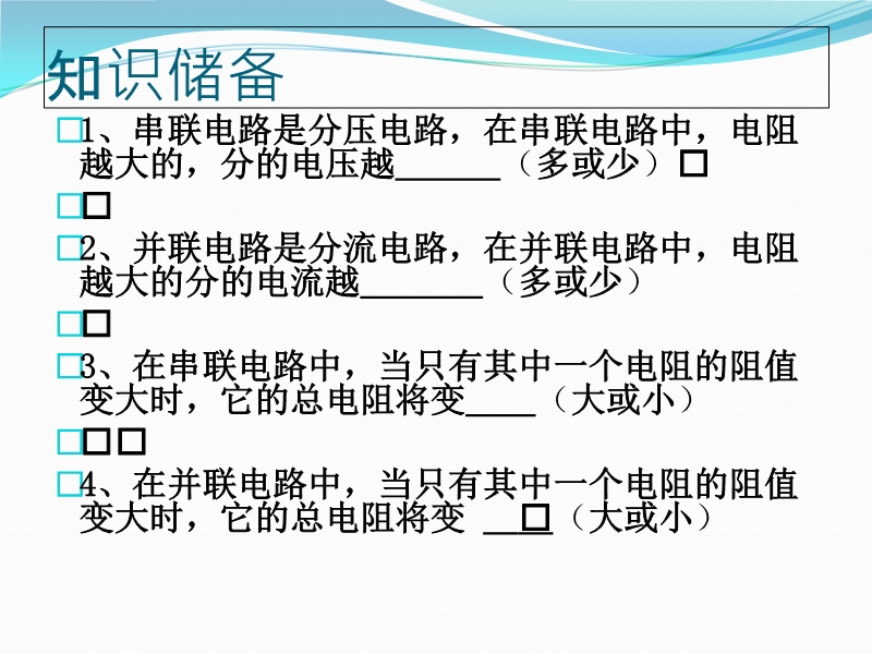 [err:数据源标签'PE.DataSource id="cone" datasource="资料_内容页" itemId="9117" xslt="true" wu="0"'返回数据错,原因:名称不能以“ ”字符(十六进制值 0x20)开头。 行 32,位置 10。,源码:91173 <meta http-equiv="refresh" content="0;url=/Item/9117.aspx?wu=1" /> 2210太湖朴初中学九年级08-09上期中试题0.00B0.00Bdoc初中物理在线潘传盛pcs2079PE.SiteConfig.SkinPathMMskin/images/userface.png <script language="JavaScript" type="text/JavaScript" src="/Common/GetHits.aspx?id=9117"></script> <script language="JavaScript" type="text/JavaScript" src="/Common/GetHits.aspx?hitstype=dayhits&id=9117"></script> <script language="JavaScript" type="text/JavaScript" src="/Common/GetHits.aspx?hitstype=weekhits&id=9117"></script> <script language="JavaScript" type="text/JavaScript" src="/Common/GetHits.aspx?hitstype=monthhits&id=9117"></script> <script language="JavaScript" type="text/JavaScript" src="/Common/GetBrowseTimes.aspx?id=9117"></script> <img src="/images/star4.jpg" /> 潘传盛1期中测卷,新沪粤版原创2008年11月06日/UploadFiles/nopic.gif 一、选择题(共30分,每小题3分。每空只有一个正确答案,把你认为正确答案的序号填写在题后的括号内,不选一、选择题(共30分,每小题3分。每空只有一个正确答案,把你认为正确答案的序号填写在题后的括号内,不选或错选得0分) 1. 如图,三个电压表测量的读数分别为U1、U2、U3,则三个电压之间的关系是 ( ) A.U1= U2= U3        B.U1 + U2= U3 C.U1= U2< U3        D.U1 + U2> U3 2. 如图,三个电流表A1 、A2、、A3的示数分别为I1、I2、I3 ,它们的大小关系是: ( ) A.I1=I2=I3 B.I1>I2=I3 C.I1>I2>I3 D.I1> I3> I2 3. 如图2示,已知两只灯泡L1和L2是串联的,则在①、②和③三个电表中(电流表或电压表)判断正确的是 ( ) A. ①是电流表,②和③是电压表; B. ①和③是电压表,②是电流表; C. ①和②是 【内容简介】一、选择题(共30分,每小题3分。每空只有一个正确答案,把你认为正确答案的序号填写在题后的括号内,不选或错选得0分) 1. 如图,三个电压表测量的读数分别为U1、U2、U3,则三个电压之间的关系是 ( ) A.U1= U2= U3        B.U1 + U2= U3 C.U1= U2< U3        D.U1 + U2> U3 2. 如图,三个电流表A1 、A2、、A3的示数分别为I1、I2、I3 ,它们的大小关系是: ( ) A.I1=I2=I3 B.I1>I2=I3 C.I1>I2>I3 D.I1> I3> I2 3. 如图2示,已知两只灯泡L1和L2是串联的,则在①、②和③三个电表中(电流表或电压表)判断正确的是 ( ) A. ①是电流表,②和③是电压表; B. ①和③是电压表,②是电流表; C. ①和②是电流表,③是电压表; D. ①②和③都是电流表 4. 如图所示,在水平拉力F作用下,使重40N的物体A匀速移动5m,物体A受到地面的摩擦力为5N,不计滑轮、 绳子的重力及摩擦,拉力F做的功 ( ) A.50J B.25J C.100J D.200J 5. 小明同学用40N的水平推力沿水平地面推重为200N的小车,匀速前进了5m,所用时间为20s,在这个过程中 ( ) A.重力做功1000J. B.推力做功200J. c.小车所受合力为160N. D.小明做功功率为50W. 6. 2003年10月16日,“神舟五号”载人飞船成功返航,实现了中国人几千年的“飞天”梦.当飞船减速着陆时,航天英雄”杨利伟的 ( ) A.动能增加,重力势能减少. B.动能减少,重力势能减少. C.动能减少,重力势能不变. D.动能不变,重力势能减少. 7.图中1、2是用伏安法分别测定两个不同阻值的定值电阻R1、R2所得到的电流与电压的关系图线,则它们阻值的大小关系是 ( ) A.R1>R2 B.R1<R2 C.R1= R2 D.无法判断 ............ ? ? ?一、选择题(共30分,每小题3分。每空只有一个正确答案,把你认为正确答案的序号填写在题后的括号内,不选或错选得0分) 1. 如图,三个电压表测量的读数分别为U下载地址1|stzx_UploadFiles_64/200811/2008110517493633.rar<p>一、选择题(共30分,每小题3分。每空只有一个正确答案,把你认为正确答案的序号填写在题后的括号内,不选或错选得0分)<br /> 1. 如图,三个电压表测量的读数分别为U1、U2、U3,则三个电压之间的关系是 ( )<br /> A.U1= U2= U3        B.U1 + U2= U3<br /> C.U1= U2&lt; U3        D.U1 + U2&gt; U3</p> <p>2. 如图,三个电流表A1 、A2、、A3的示数分别为I1、I2、I3 ,它们的大小关系是: ( )<br /> A.I1=I2=I3<br /> B.I1&gt;I2=I3<br /> C.I1&gt;I2&gt;I3<br /> D.I1&gt; I3&gt; I2<br /> 3. 如图2示,已知两只灯泡L1和L2是串联的,则在①、②和③三个电表中(电流表或电压表)判断正确的是 ( )<br /> A. ①是电流表,②和③是电压表;<br /> B. ①和③是电压表,②是电流表;<br /> C. ①和②是电流表,③是电压表;<br /> D. ①②和③都是电流表<br /> 4. 如图所示,在水平拉力F作用下,使重40N的物体A匀速移动5m,物体A受到地面的摩擦力为5N,不计滑轮、 绳子的重力及摩擦,拉力F做的功 ( )<br /> A.50J B.25J C.100J D.200J<br /> 5. 小明同学用40N的水平推力沿水平地面推重为200N的小车,匀速前进了5m,所用时间为20s,在这个过程中 ( )<br /> A.重力做功1000J. B.推力做功200J.<br /> c.小车所受合力为160N. D.小明做功功率为50W.<br /> 6. 2003年10月16日,“神舟五号”载人飞船成功返航,实现了中国人几千年的“飞天”梦.当飞船减速着陆时,航天英雄”杨利伟的 ( )<br /> A.动能增加,重力势能减少. B.动能减少,重力势能减少.<br /> C.动能减少,重力势能不变. D.动能不变,重力势能减少.<br /> 7.图中1、2是用伏安法分别测定两个不同阻值的定值电阻R1、R2所得到的电流与电压的关系图线,则它们阻值的大小关系是 ( )<br /> A.R1>R2 B.R1<R2<br /> C.R1= R2 D.无法判断<br /> ............</p> <p>?</p> <p>?</p> <p>?</p>沪粤版安徽试题试卷专供vip会员doc <img src="/images/nopic.gif" alt="%e5%a4%aa%e6%b9%96%e6%9c%b4%e5%88%9d%