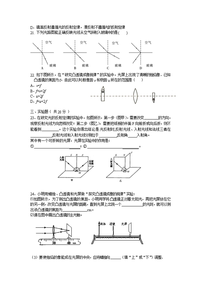 5、古诗词中有许多描述光学现象的诗句,如“潭清疑水浅”说的就是光的_______现象;“池水映明月”说的就是光的________现象。