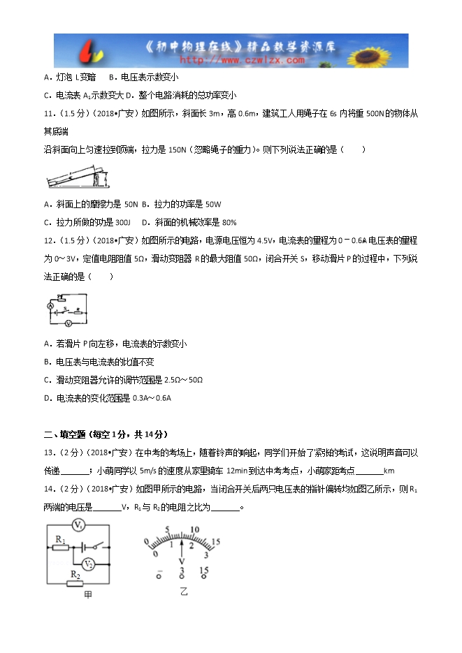 1.(1.5分)(2018•广安)下列物理量最接近实际的是( )