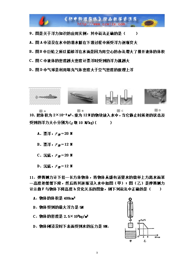 9.图是关于浮力知识的应用实例,其中说法正确的是( )
