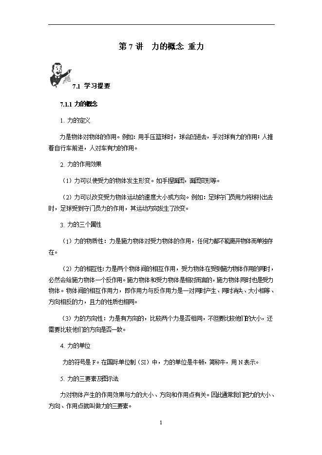 初中物理竞赛教程(基础篇):第7讲 力的概念 重力(附强化训练题及答案)