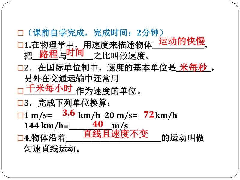 - 10122024秋“七彩课堂”人教版《1.3 运动的快慢 第2课时 匀速直线运动 平均速度》同步教学课件