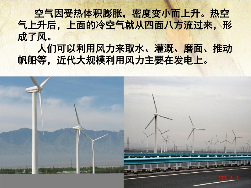 【内容简介】人教版《6.4密度与社会生活》PPT+视频,共有23张幻灯片。课件引导学生结合生活中的现象讨论了密度与温度的关系,讨论了风的形成原因及风力的应用,课件还引导学生讨论了如何应用密度知识鉴别物质的种类,展示了密度在生活中的应用等。