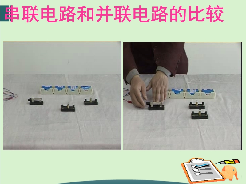 【内容简介】苏科版九年级物理上册《13.2电路连接的基本方式》PPT课件共有27张幻灯片,首先介绍串并联电路的概念,然后学生实验探究得出串并联电路的特点,分析生活中的电路哪些是串联哪些是并联。