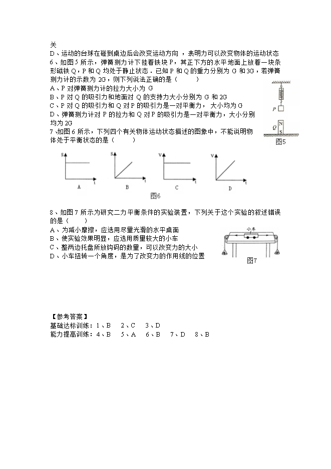 7、如图6所示,下列四个有关物体运动状态描述的图象中,不能说明物体处于平衡状态的是( )