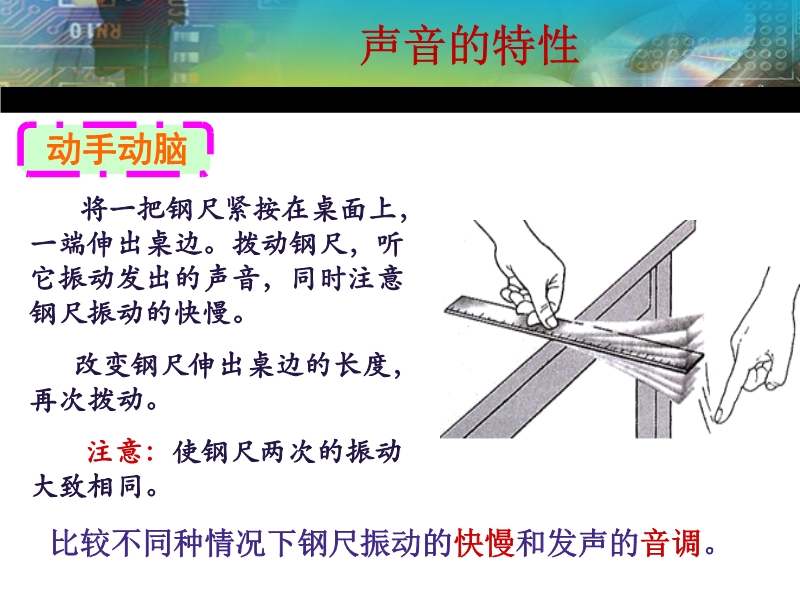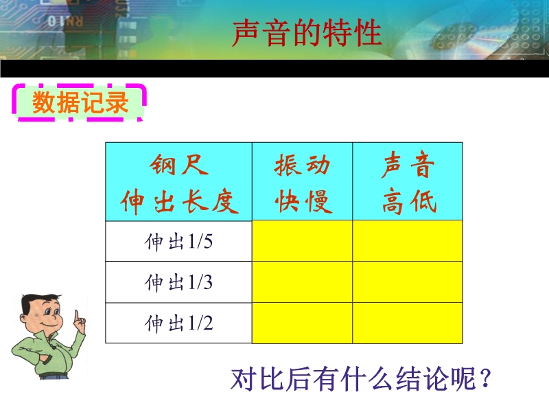【内容简介】人教版《2.2声音的特性》PPT课件,共有26张幻灯片.课件引导学生认识了声音的三个特性:音调、响度、音色,并引导学生通过实验探究了音调与频率的关系、响度与振幅的关系,讨论了影响音色的因素。