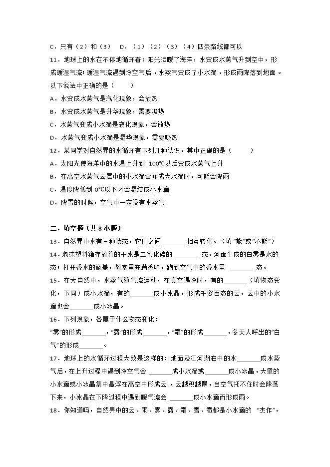 8.下列自然现象中的“水”物质,都表现为固态的是( )
