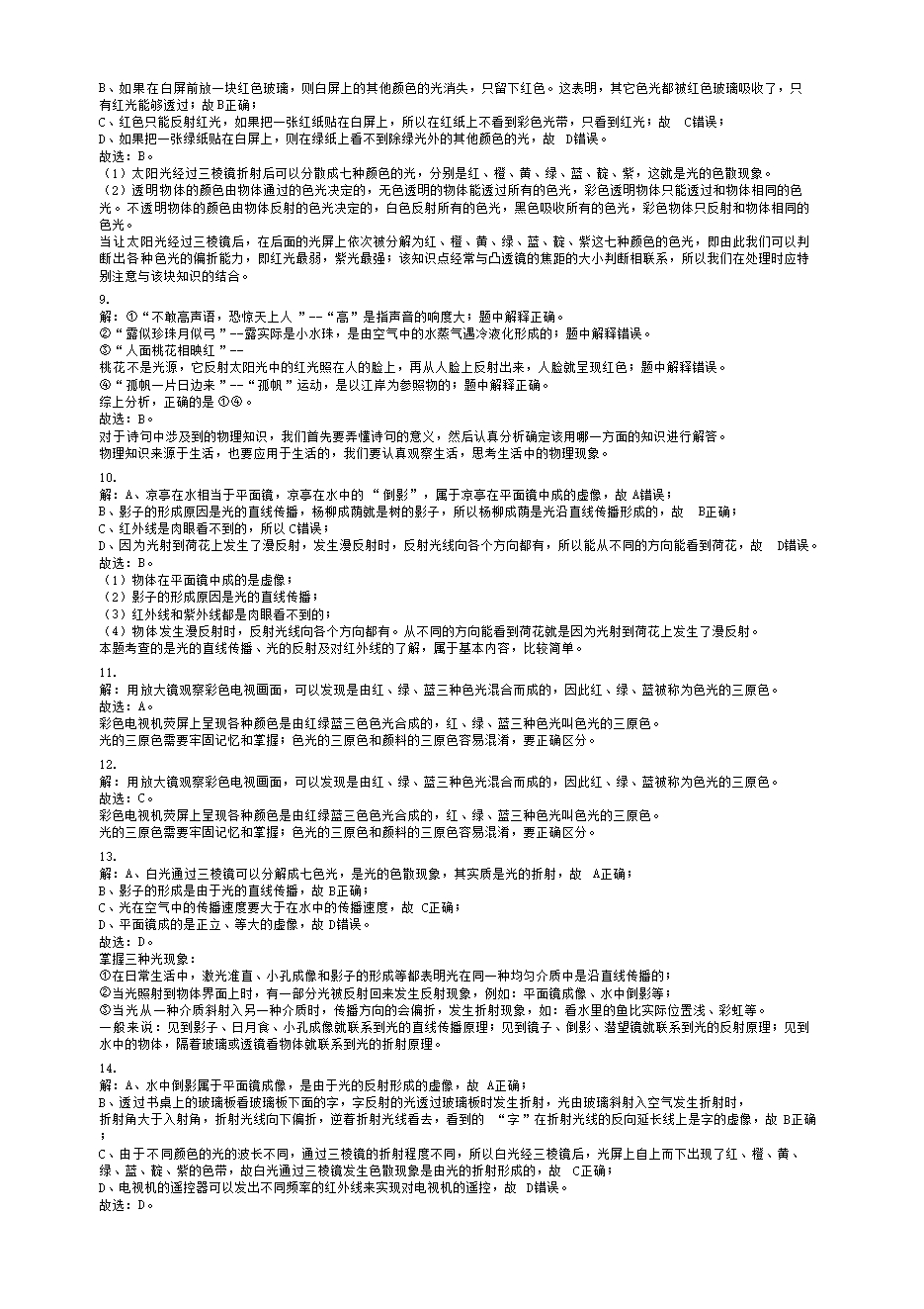 ③“人面桃花相映红”--桃花是光源,发出的红光映红了人的脸