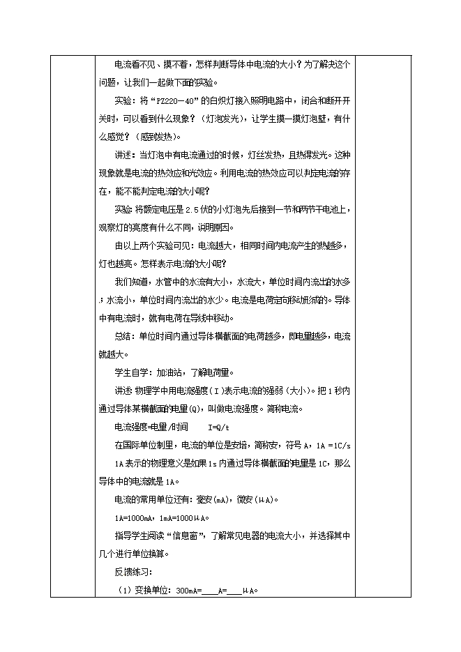 由以上两个实验可见:电流越大,相同时间内电流产生的热越多,灯也越亮。怎样表示电流的大小呢?