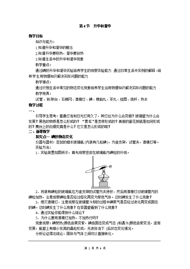 通过碘的升华和凝华实验培养学生的观察实验能力.通过日常生活中实例的解释,培养学生用物理知识解决实际问题的能力