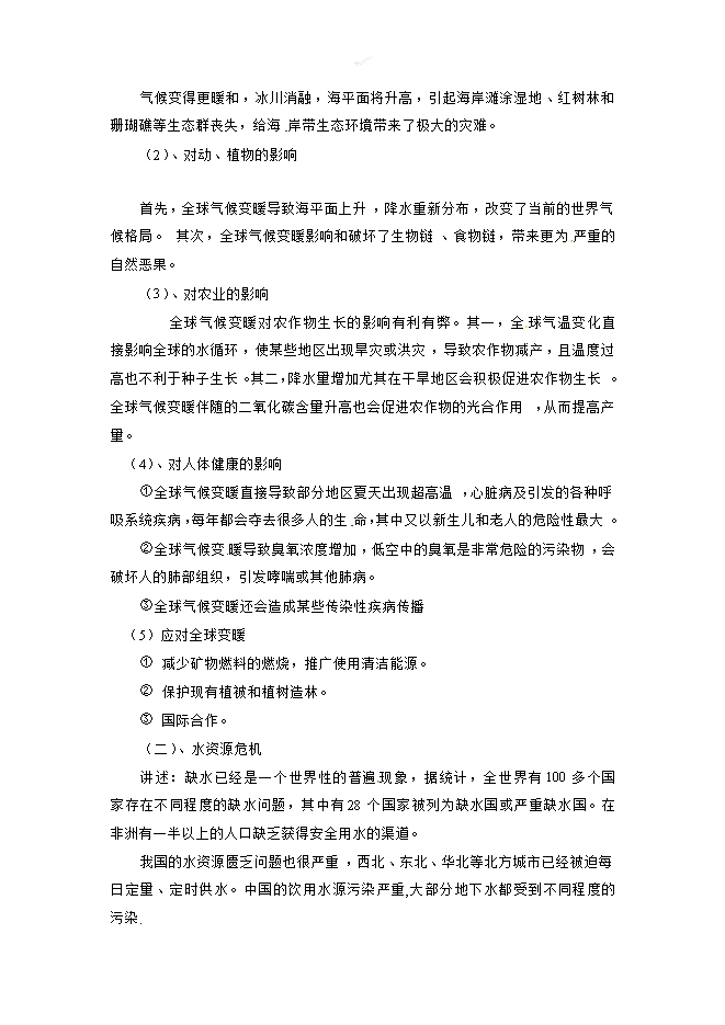2018秋沪科版九年级物理教学设计(一):12.5全球变暖与水资源危机