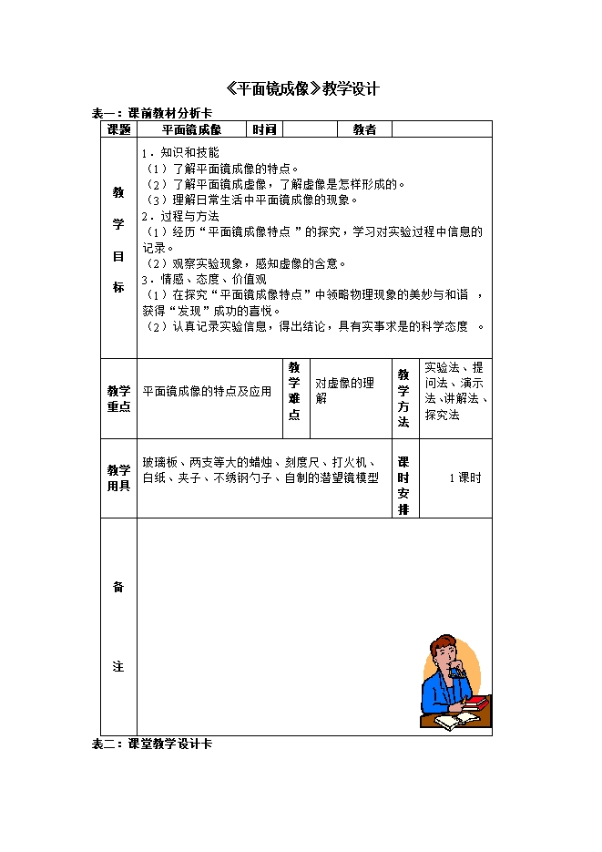 2018年秋人教版八年级物理上册《4.3平面镜成像》教学设计