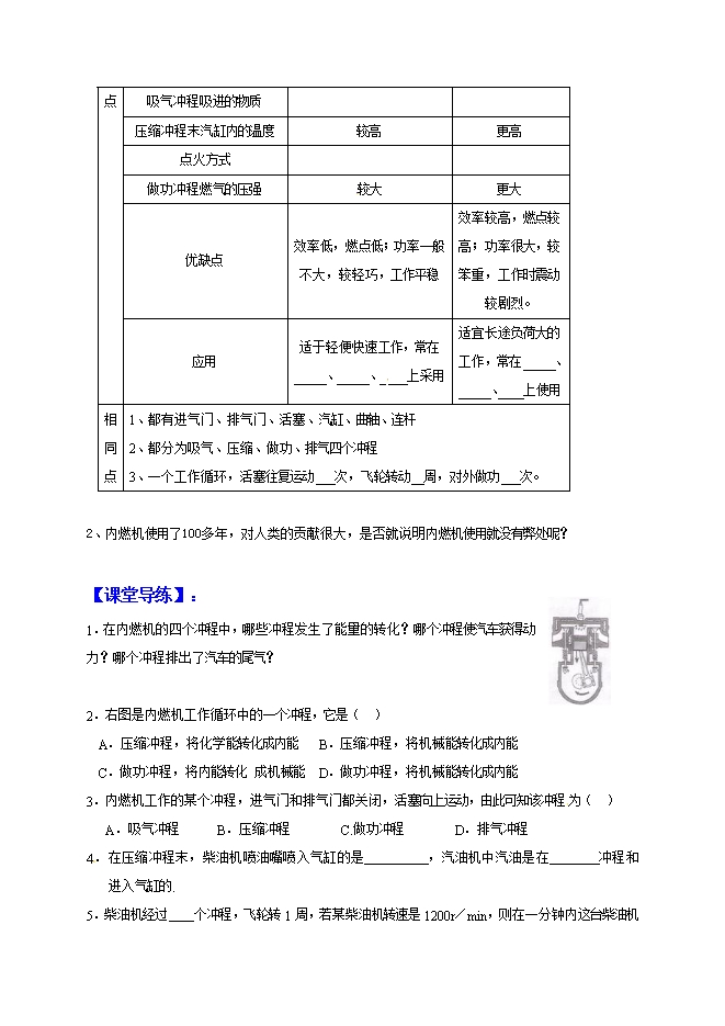 安徽省合肥市第一六八中学九年级物理全册学案:13.3内燃机(沪科版,无答案)