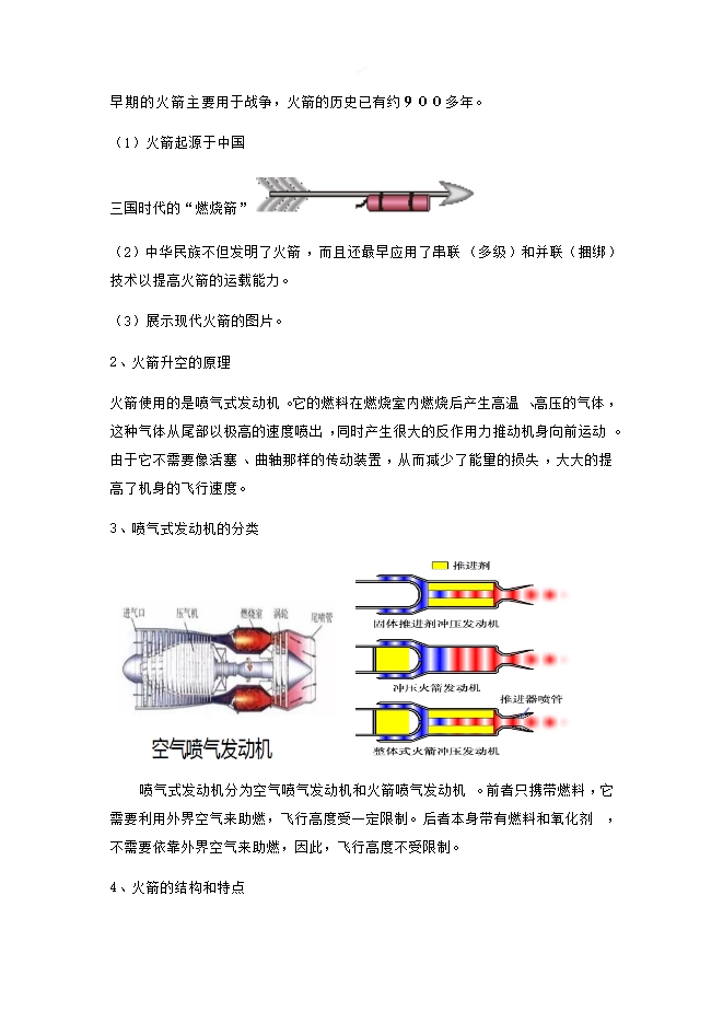 2018-2019北师大版九年级全册物理教案:《10.5火箭》(详案附教材分析)