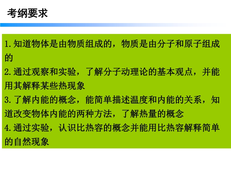 【内容简介】人教九年级物理 《 第十三章 内能》PPT复习课件,课件共有40张幻灯片,引导学生认识本章的主要知识点,通过习题引导学生回顾本章基础知识,课件的重点是按照考点重点突破。