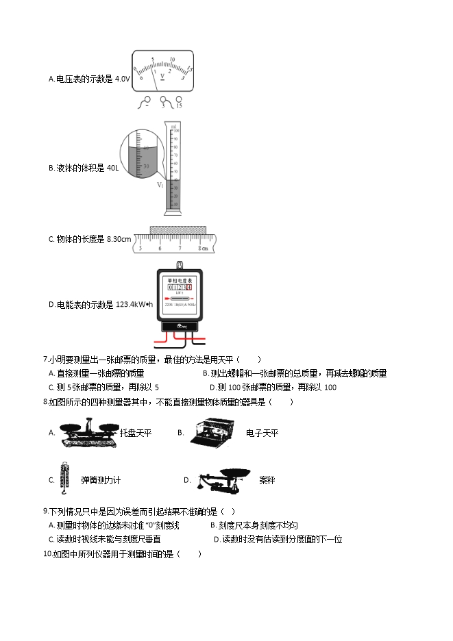 2018-2019教科版八年级上册物理练习题:1.2测量:科学探究的重要环节(附答案)