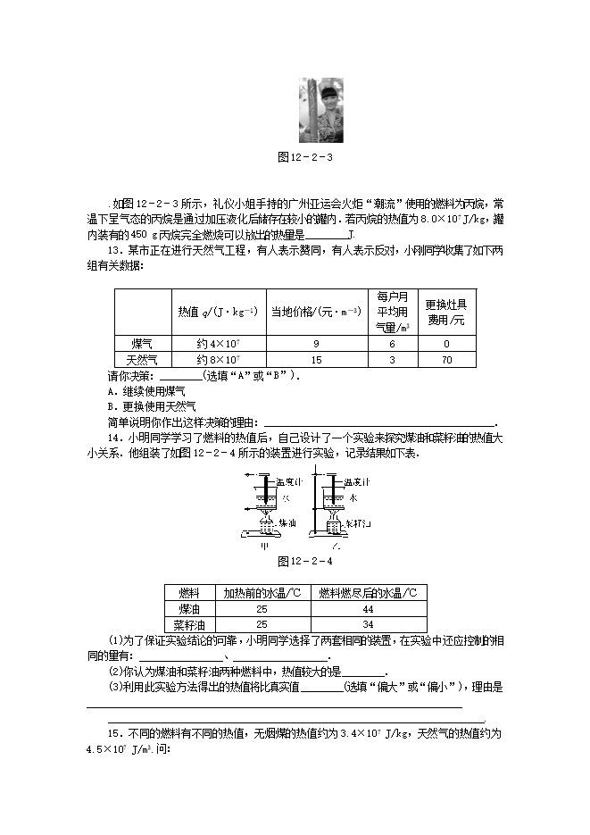 2018年秋沪粤版九年级物理上册同步练习:12.2热量与热值