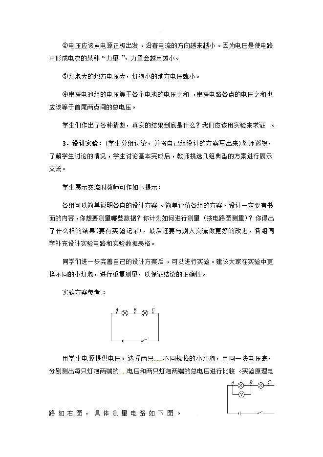 人教版九年级全册物理精品教案:16.2《串、并联电路中电压的规律》(附教材分析)