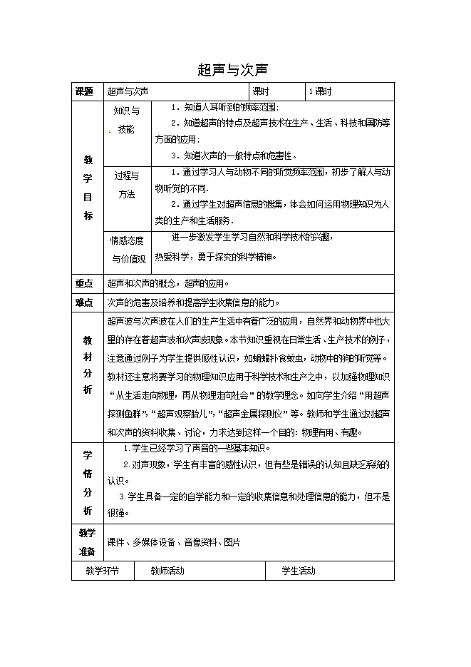沪科版优质课:《3.3超声与次声》ppt+视频+教学设计