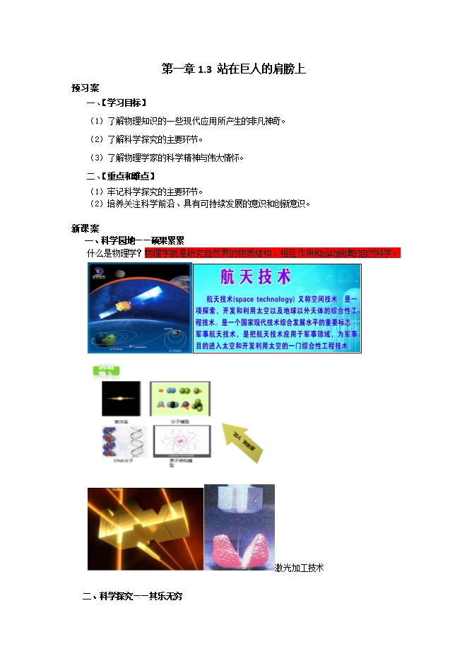 - 2279安徽省繁昌县第二中学八年级上册集体备课教案:§1.3站在巨人的肩膀上(沪科版物理)