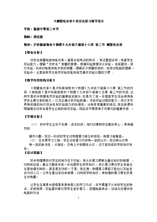 沪科版《电学实验复习:伏安法测电阻和电功率》PPT课件+教案(平潭综合实验区第三中学)