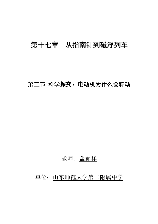 沪科版公开课《17.3科学探究:电动机为什么会转动》ppt+教案(山东师范大学第二附属中学)