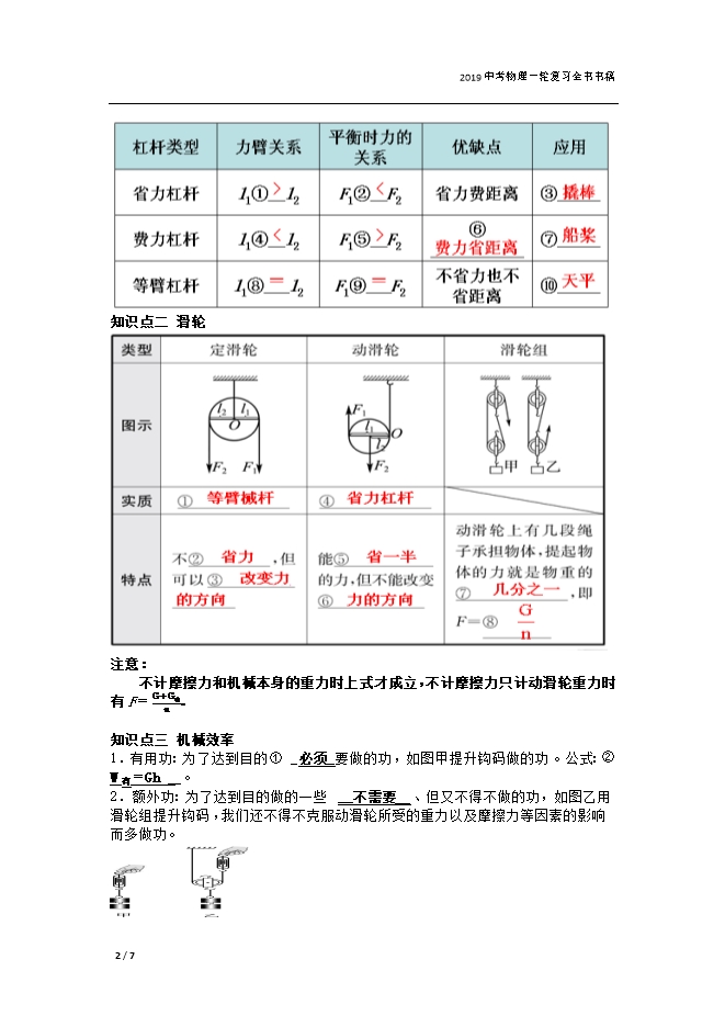 2019中考物理一轮复习全书书稿:第十二章 简单机械