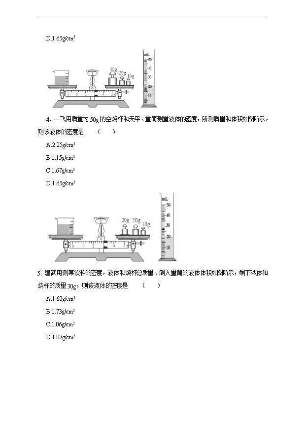 - 173《6.3 测量物质的密度》—2021-2022人教版八年级物理上册同步训练卷(附解析)