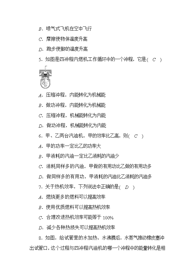 2018-2019教科版物理九年级全一册教学质量评估试卷:第二章 改变世界的热机(附答案)