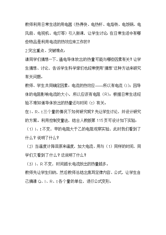 人教版九年级物理全册《18.4焦耳定律》说课稿1