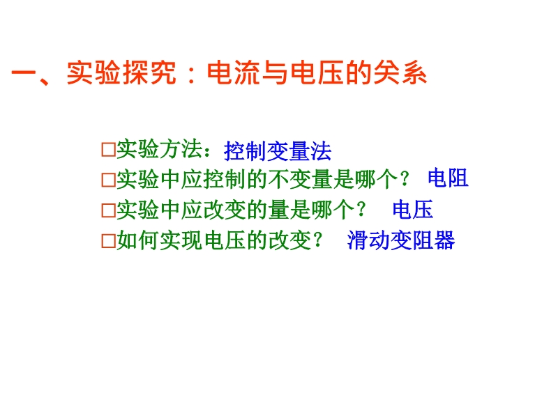 【内容简介】沪粤版《14.2 探究欧姆定律》PPT+flash课件,共有24张幻灯片。课件引导学生探究了电流与电压及电阻的关系,让学生经历了科学探究的基本过程,以学生自主探究学习为主。通过探究,引导学生总结了欧姆定律的内容及表达式,并引导学生应用欧姆定律解决具体的实际问题.