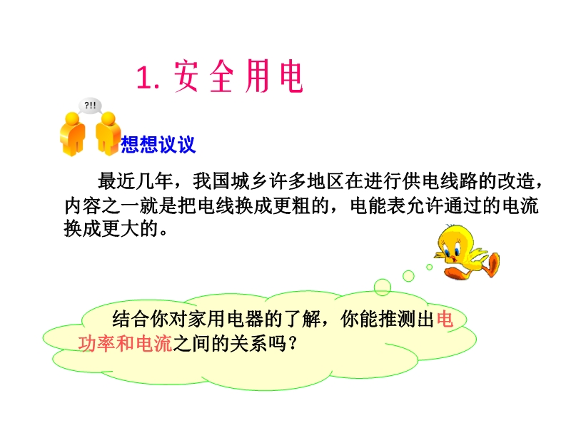 【内容简介】人教版 《19.2家庭电路中电流过大的原因》PPT课,由29张幻灯片组成。课件引导学生通过生活中的用电实例用电功率的知识分析了家用电器功率过大和短路可能带来的危害,介绍了熔丝的作用和原理等。