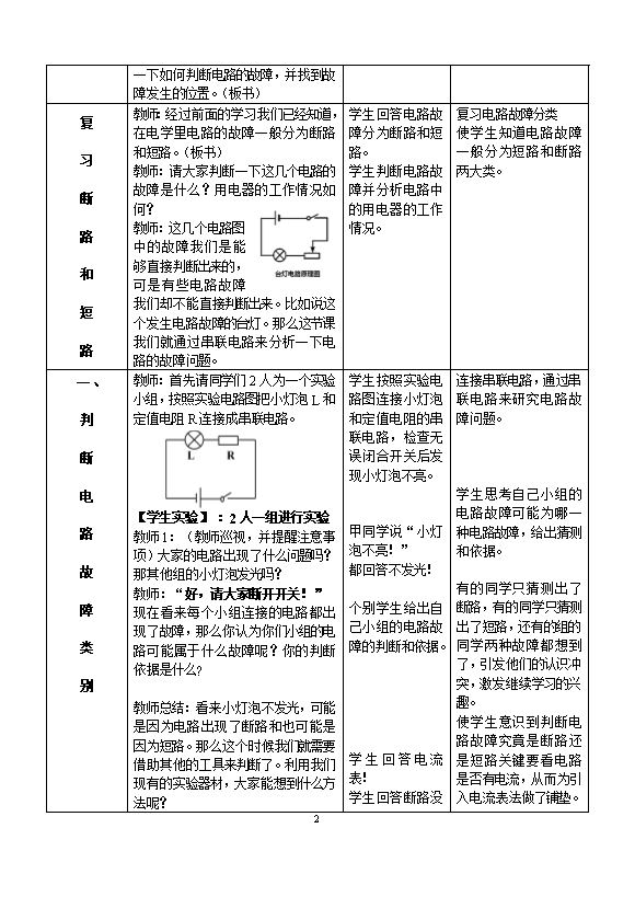 人教版《第十七章 欧姆定律--电路故障分析专题》PPT+教案+学案(北京市回民学校 张凤雪)