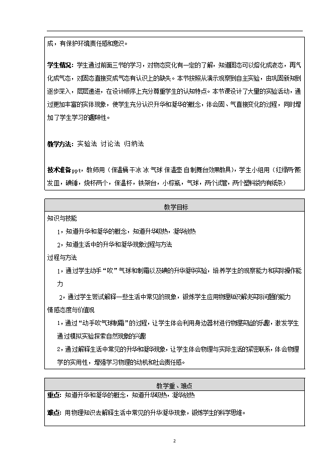 人教版:《3.4升华和凝华》PPT+视频+教案