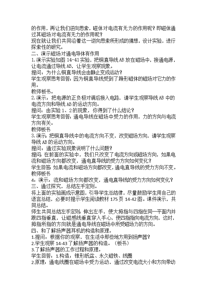 北师大版《14.5磁场对电流的作用力》ppt课件+教学设计+flash