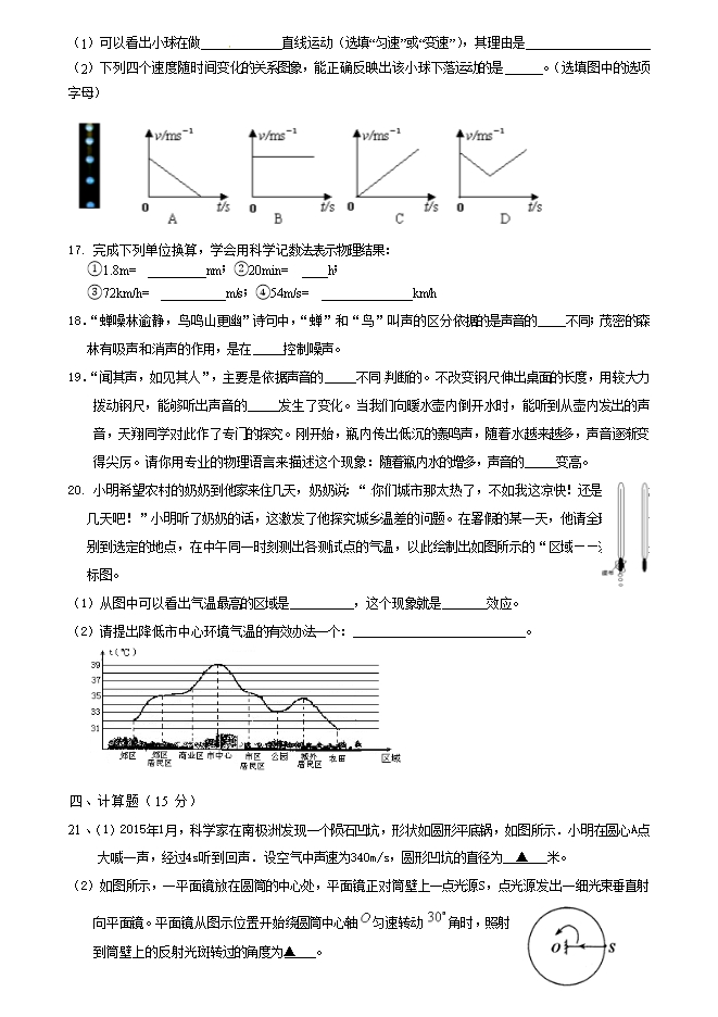 - 1162湖南省张家界市桑植县2018-2019学年八年级上学期期中考试物理试题及答案